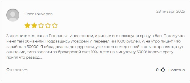 Отзывы трейдеров о работе с Рыночные Инвестиции