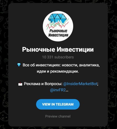 Телеграм-канал «Рыночные Инвестиции» сулит нам ценные знания о трейдинге и даже пассивный доход без особых усилий. Комьюнити появилось в ТГ относительно давно – в ноябре 2020 года, и за пять лет тут собралось около 10 тысяч фолловеров. Впрочем, посты просматривает не больше 20% аудитории.