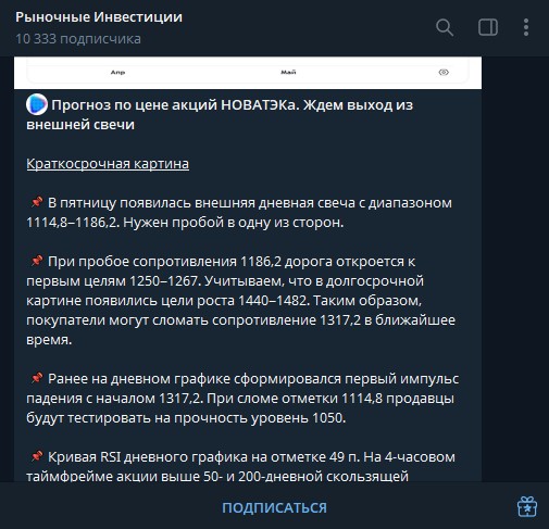 Итоги обзора канала в Телеграмм «Рыночные Инвестиции»