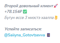 В каждой публикации автор сообщает о довольном клиенте, который получил десятки тысяч рублей. Следом идут манипулятивные маркетинговые сообщения в формате «успей записаться» и ссылка на ЛС.Так повторяется ежедневно несколько раз, других видов постов в ленте нет. Ничего полезного фолловер из этого канала для себя не почерпнет.