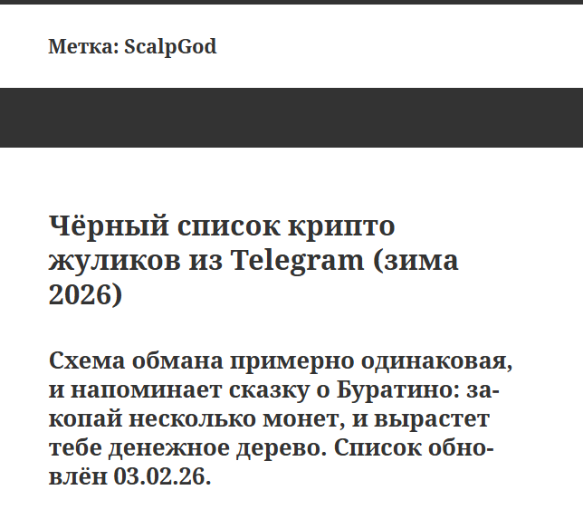 Отзывов от участников сообщества Scalpgod нет, однако на одном из сайтов найдено упоминание о проекте – он внесен в черный список крипто жуликов.