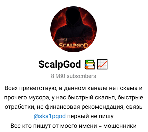 ScalpGod – паблик на базе Telegram, автор которого занимается скальпингом и выкладывает сигналы. Он сообщает, что его контент не является финансовой рекомендацией, однако старается активно привлечь аудиторию в свое сообщество. Далее в обзоре расскажем, стоит ли доверять мнению крипто наставника.