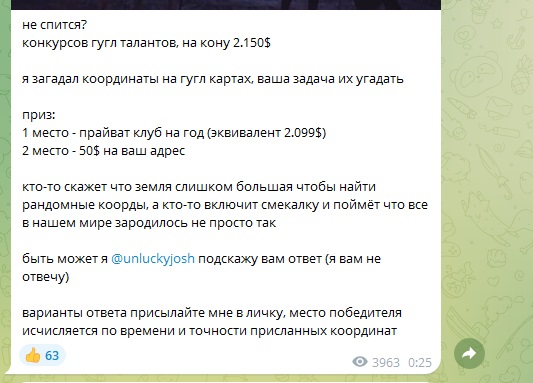 Правда, ни в одной из таких публикаций нет информации о стоимости подписки, что не сильно нравится фолловерам. Но Джо утверждает, что он готов делать большие скидки, поэтому стоимость членства в клубе обсуждается в частном порядке. Мы изучили весь контент канала и нашли объявление о проведении конкурса, где призом была годовая подписка на Прайвайт, это более 2 тыс. долларов.