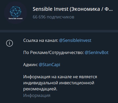 На канале «Sensible Invest (Экономика / Финансы / Инвестиции)» за 3 года работы подписались 66 700 человек, признаков накрутки ботами нет. Владелец сообщества Sensible Investor работает анонимно, не назвал свое имя, не публиковал фотографии. Админом канала числится Станислав Capital (@StanCapi).