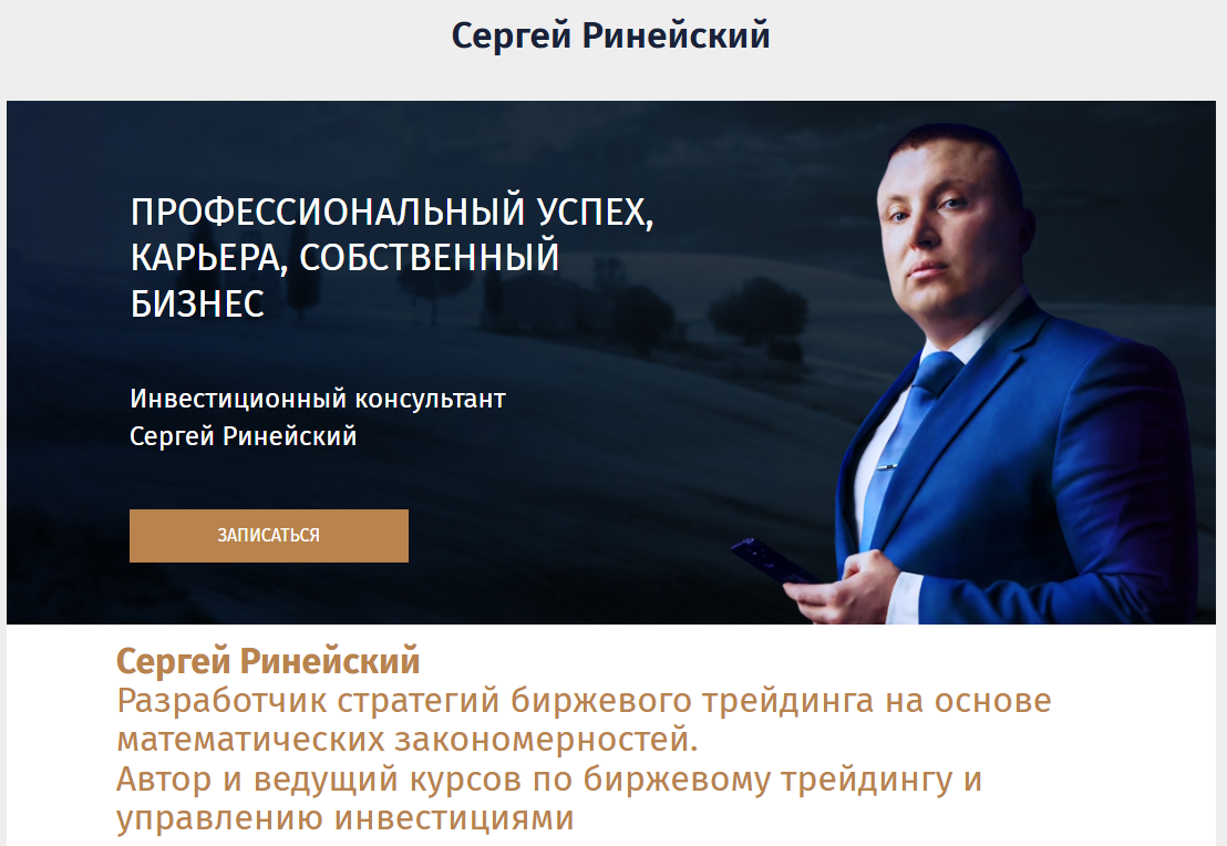 Сайт по сути является агрегатором, где различные эксперты предлагают свои финансовые услуги. Одним из них и является Ринейский Сергей Александрович. При этом его профессионализм, как и многих других персонажей, представленных на сайте, находится под сомнением.