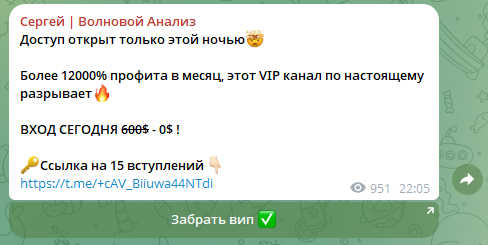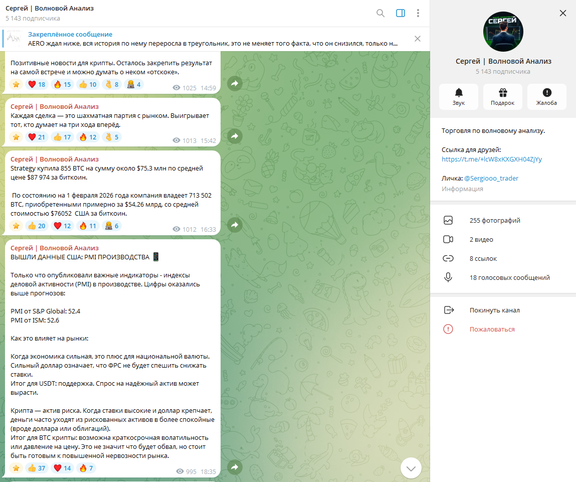 Обзор тг-канала «Сергей Волновой Анализ»: проверка сигналов, условия сотрудничества и отзывы пользователей о скаме в работе трейдера