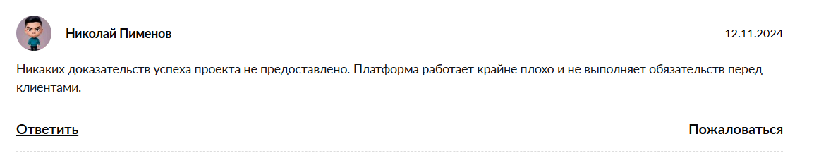 Положительных отзывов об инвесторе в интернете нет. Сложилось стойкое впечатление, что заработать деньги с его помощью нельзя. Отрицательный пользовательский опыт демонстрирует настоящий обман системы Сергея Смита.