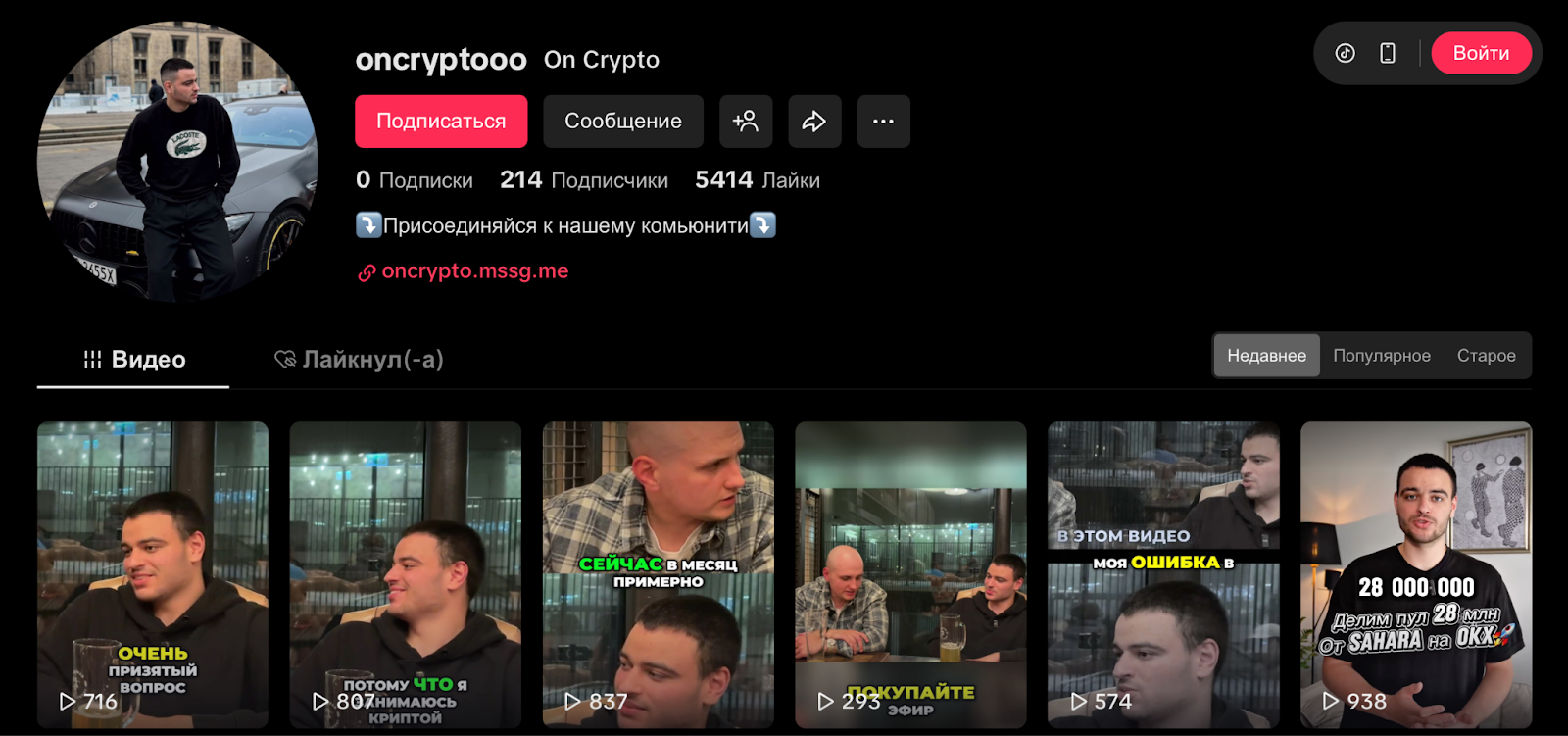 Мы ничего не знаем об экспертности «Серого» и его бэкграунде в сфере крипты. Контакты для связи указаны через администраторов с никами m34vmkt и evavvvvvvvvvvvv, что характерно для крипто-каналов. Через данные профили предлагается решать вопросы сотрудничества и рекламы, ведь отдельного аккаунта техподдержки не предусмотрено.Канал проекта на Ютубе Oncrypto Channel дополняет картину видео‑обзорами — от разбора конкретных монет до общих трендов. В ТикТок (Oncryptooo) и Инстаграм (On Crypto Channel) контент более легкий: короткие тезисы, мемы про рынок и «горячие» прогнозы на пару предложений. Визуально это выглядит как попытка охватить максимум площадок и собрать аудиторию с разных источников.
