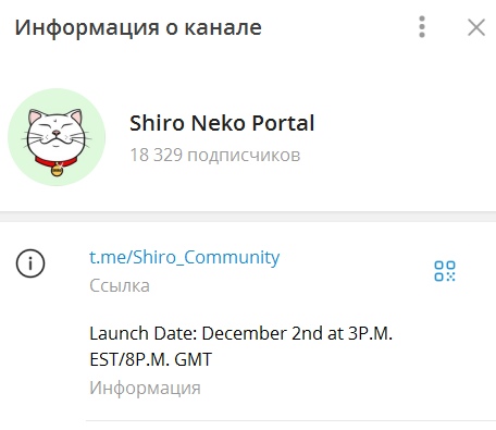Для популяризации проект Shiro Neko разработчики создали информационный портал Shiro Neko Portal на платформе Телеграмм. Для присоединения к сообществу крипто энтузиастов необходимо перейти по ссылке shiro community.