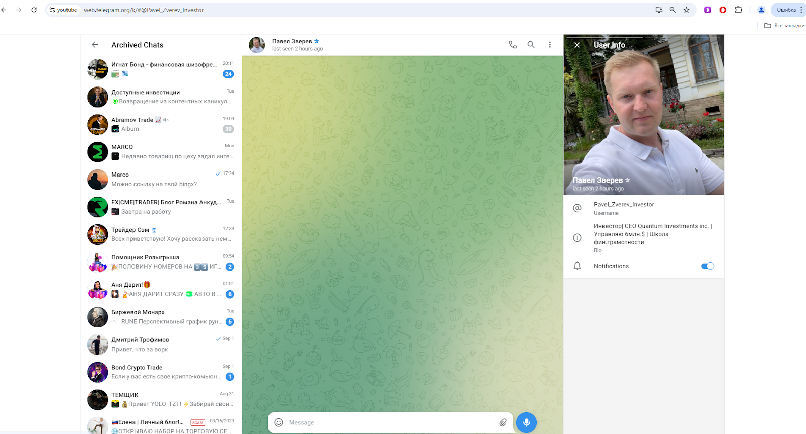 Уже на данном этапе можно понять, что Павел никакой не владелец фонда, а обычный дроп, рекламирующий скам проект, привлекая аудиторию с инвестициями, откуда их не получится вывести.