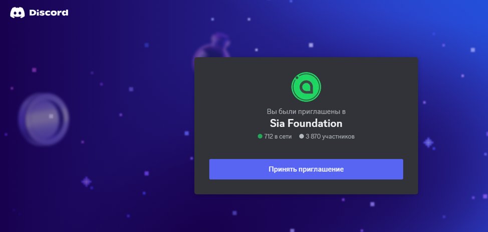 Поиск группы в Discord следует выполнять по ключу Sia. По состоянию на 19 февраля 2025 года группа The Sia Foundation имела 3870 подписчиков. Здесь можно пообщаться с единомышленниками, а также обратиться к представителям сервиса облачного хранения за квалифицированной консультацией.