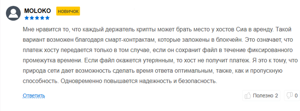 Отзывы про токен Siacoin