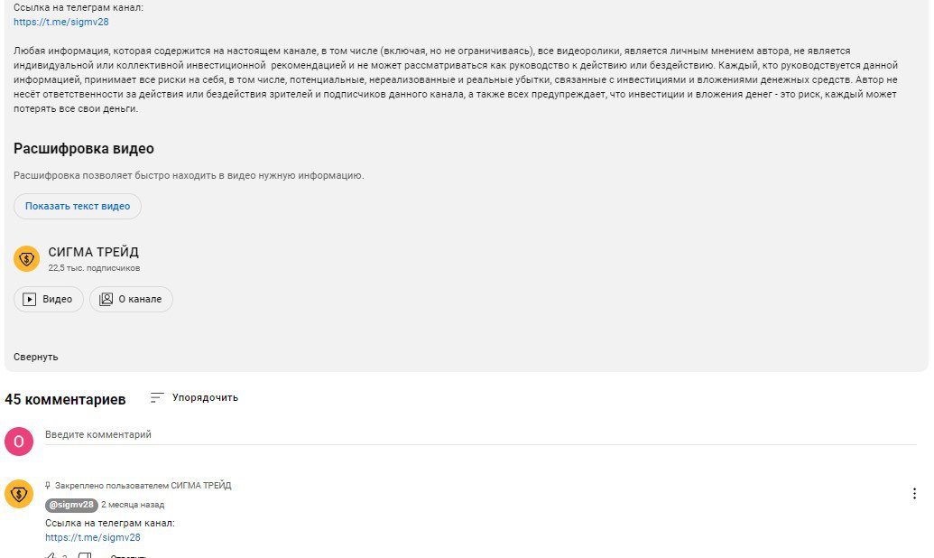 В ютуб-канале «Сигма Трейд» люди обсуждают только содержание роликов.