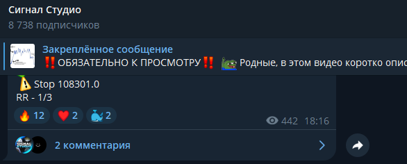 Сигнал Студио – это группа в Telegram с ежедневными торговыми сигналами. Создатели проекта анализируют крипторынок и публикуют свои идеи относительно происходящего. Наша редакция разберется в деятельности канала и постарается выяснить, заслуженно ли здесь образовалась почти 9-тысячная аудитория или нет.