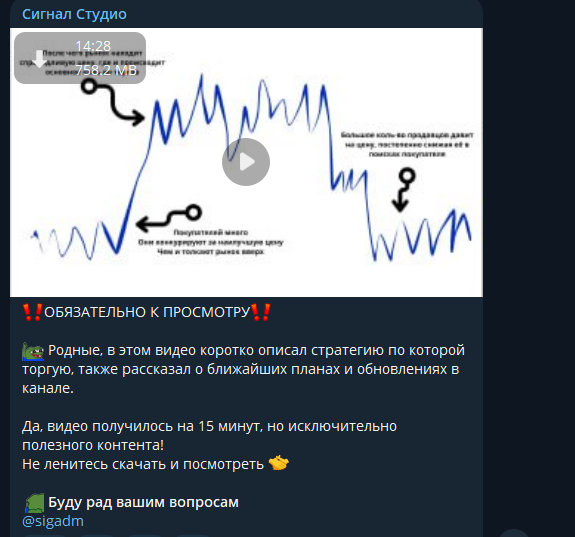 Стратегии в сообществе посвятили отдельный пост и даже закрепили его. В 15-минутном видео Сергей рассказывает, как он размышляет, давая сигналы. Ничего уникального в ролике мы не обнаружили: автор описывает стандартные сценарии при различных паттернах. К тому же подозрительно, что главная “фишка” проекта находится в открытом доступе. В чем тогда смысл сотрудничества с инвестором – непонятно.