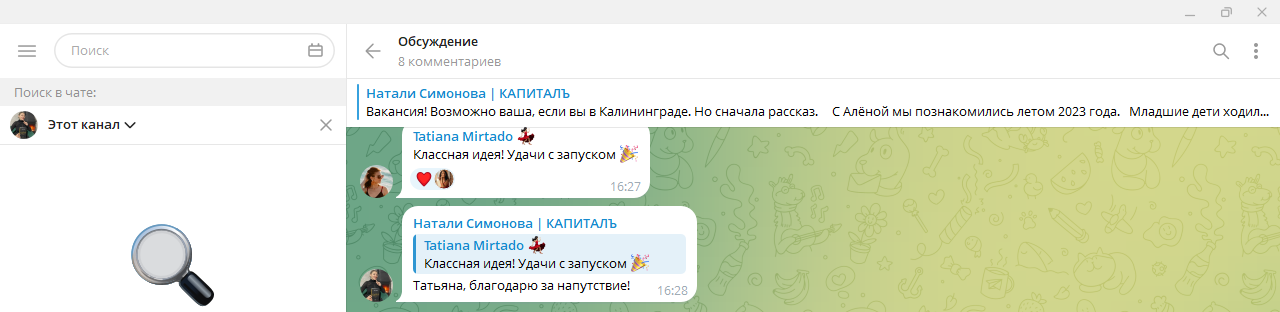 В итоге критических замечаний нет, но и конкретные истории успеха на канале тоже не встречаются. Заметим, что автор часто общается с пользователями в чате и предлагает писать на Simtasha vpluse@gmail com в случае вопросов.