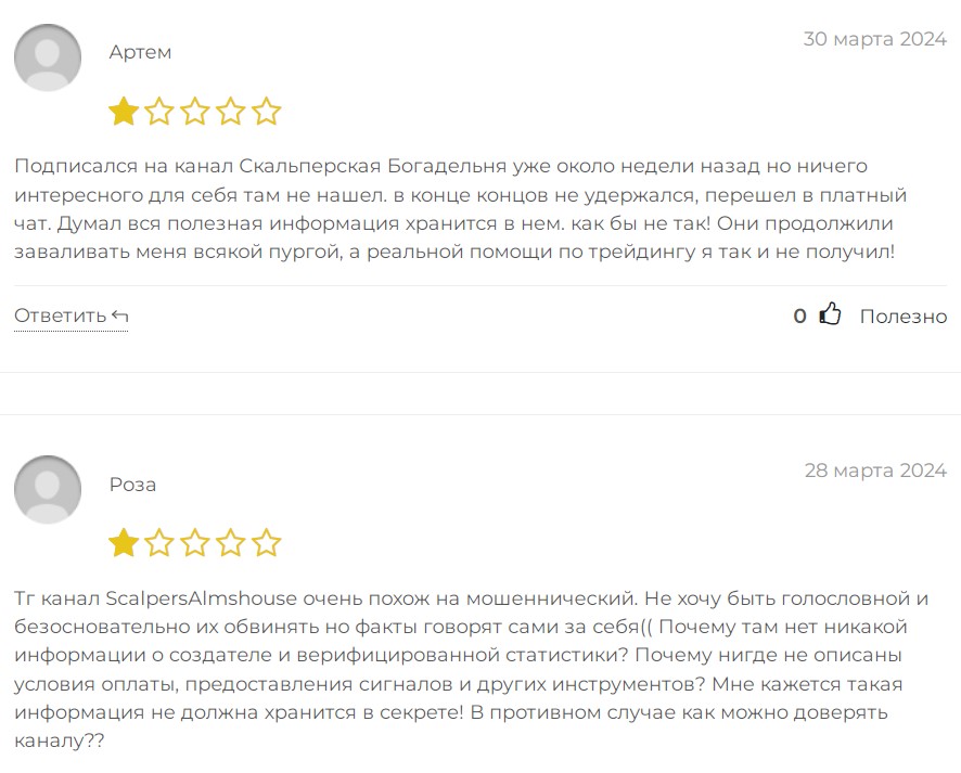 На тематических платформах о проекте Скальперская Богадельня отзывов уже довольно много, и все они только отрицательные. Люди жалуются на то, что в платном чате представлена такая же ненужная вода, как и в бесплатном. Что рекомендации Седова приводят к сливу. А главное, что аферист зарабатывает на свои рефералах.