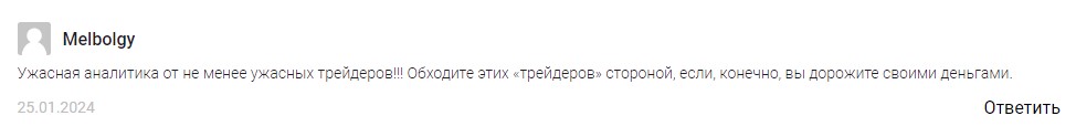 На ресурсах мошенника реальных комментариев очень мало. Даже на открытом канале Бабкодельня. Открытая. было обнаружено всего несколько отчетов, да и те, вероятнее всего, отправлены с аккаунтов афериста или его команды. Верить таким отзывам и отчетам категорически нельзя.