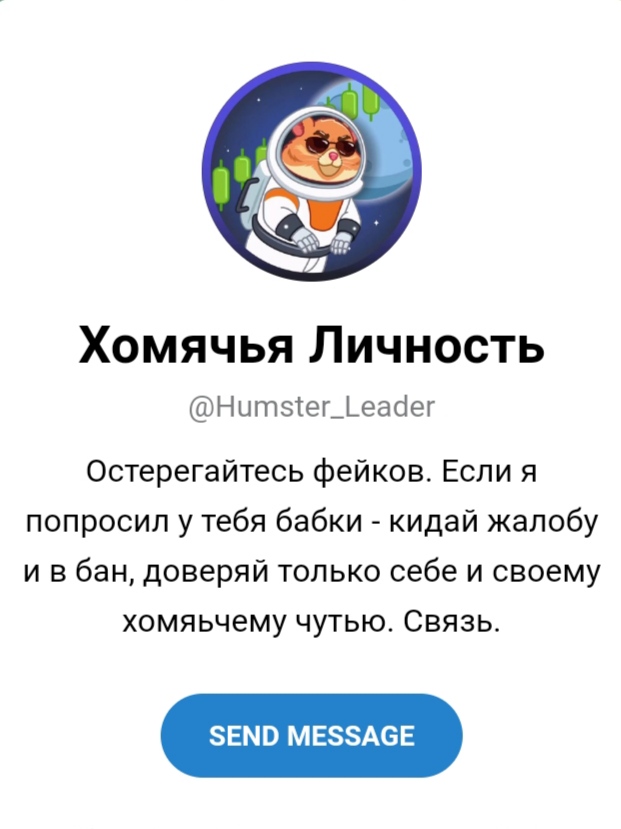 Нельзя не заметить, что админ humster leader никогда не требует вложений от своих подписчиков. В случае, если кто-то от имени канала попросит деньги, он просит немедленно подать жалобу, так как это означает взлом аккаунта.