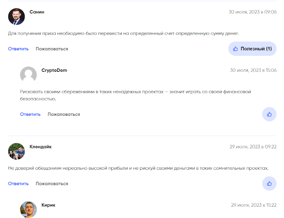 Деньги можно внести только через криптовалютный кошелек, а выводить можно только прибыль, депозит всегда остается на счету. Реферальная программа предлагает 20 процентов, но выплаты действуют всего неделю. Отзывы о проекте негативные: пользователи сообщают о конкурсах, где для получения выигрыша необходимо было перевести деньги. Проект Демида Хапилина вызывает сомнения и может оказаться мошенническим.