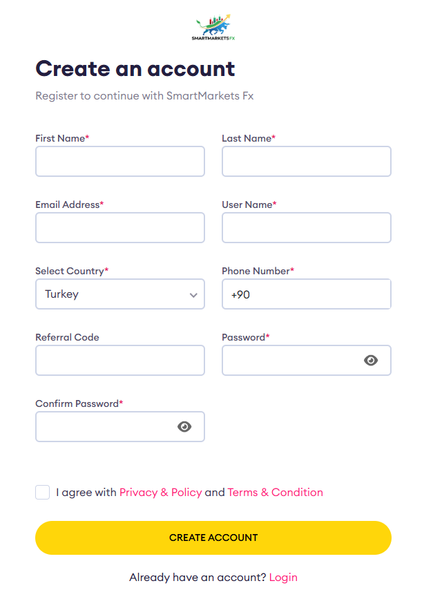 Пользоваться инструментами и функциями SmartMarkets FX можно только после регистрации. Для создания учетной записи нужно нажать на Get Started.
