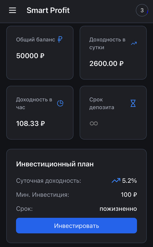 - SmartProfitweb bot — личный инвестиционный фонд, разработанный специально для тех, кто ценит стабильный доход без необходимости глубоко погружаться в рыночные нюансы.