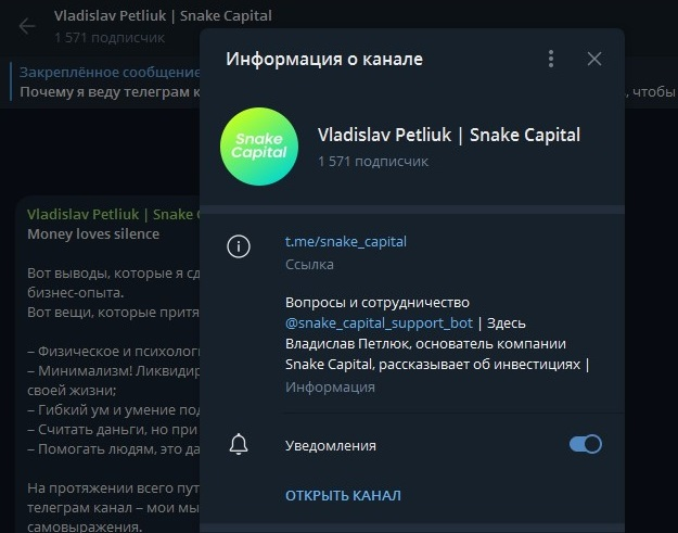 Отзывы о Телеграм-канале Snake Capital, оценка проекта Владислава Петлюка, скам или нет