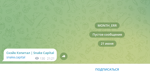 Аудитория Vladislav Petliuk мизерная – всего 31 подписчик. И там на момент проведения нашей проверки 31 августа 2024 года нет ни единого сообщения. Есть только ссылка на платформу Snake Capital. Это, судя по утверждениям Владислава Петлюка, инвестиционная платформа.