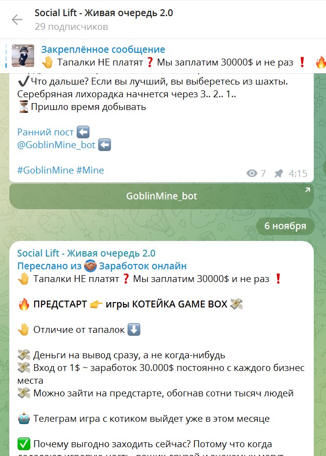 В телеграмм-канале людей приглашают регистрироваться на платформе. В проекте обещают высокий заработок почти без вложений. Владелец канала рассказывает, что он с командой разработал целую систему. В «Social Lift Живая очередь 2 0» есть курсы, на которых люди учатся МЛМ-бизнесу и финансовой грамотности, прокачивают лидерские качества, знакомятся с криптой и инвестиционными сделками. Во время обучения на платформе разбираются, как делать инвестиции и торговать на бирже, чтобы выйти в плюс. На платформе есть доступ к конструкторам сайтов и телеграмм-ботов, нейронке и собственному ВПН. В «Social Lift Живая очередь», по отзывам, есть возможность изучить доходные связки: партнерские программы и другие платные и бесплатные базовые материалы, которые позволяют быстро начать зарабатывать даже новичкам. Стоимость платных курсов неизвестна.