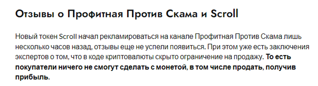 Токен Scroll также имеет ужасную репутацию. Профессиональные трейдеры не рекомендуют его покупать.