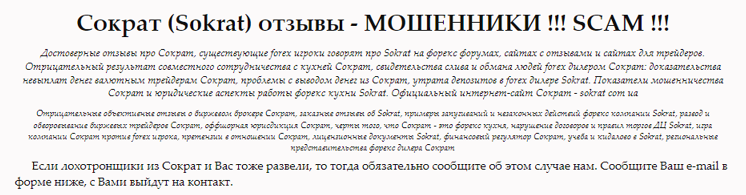 Проект Socrat trading отзывы имеет не самые лучшие. Рейтинг у проекта на сайтах с разборами и форумах низкий. Некоторые утверждают, что Socrat trading скам и его рекомендации приведут к потере денег.