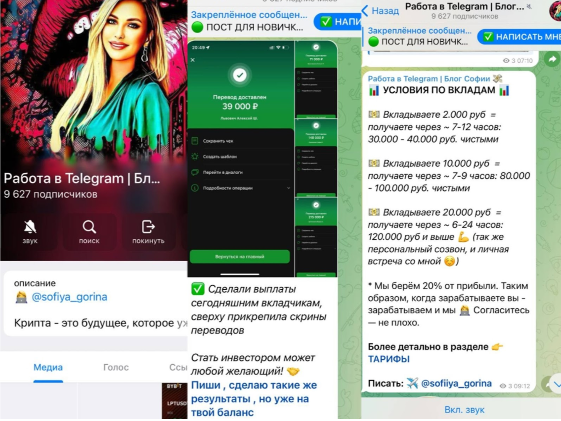 - В телеграм София Горина отсутствует полезный контент. Лента сообщества наполнена скринами о переводах, отзывами от клиентов и призывами к осуществлению вкладов. Однако, подписчики не имею причин, по которым они могли бы быть уверенными в достоверности тех же отзывов и скринов.