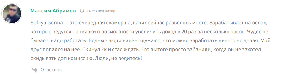 Заработок и отзывы о криптоинвесторе Софии Гориной