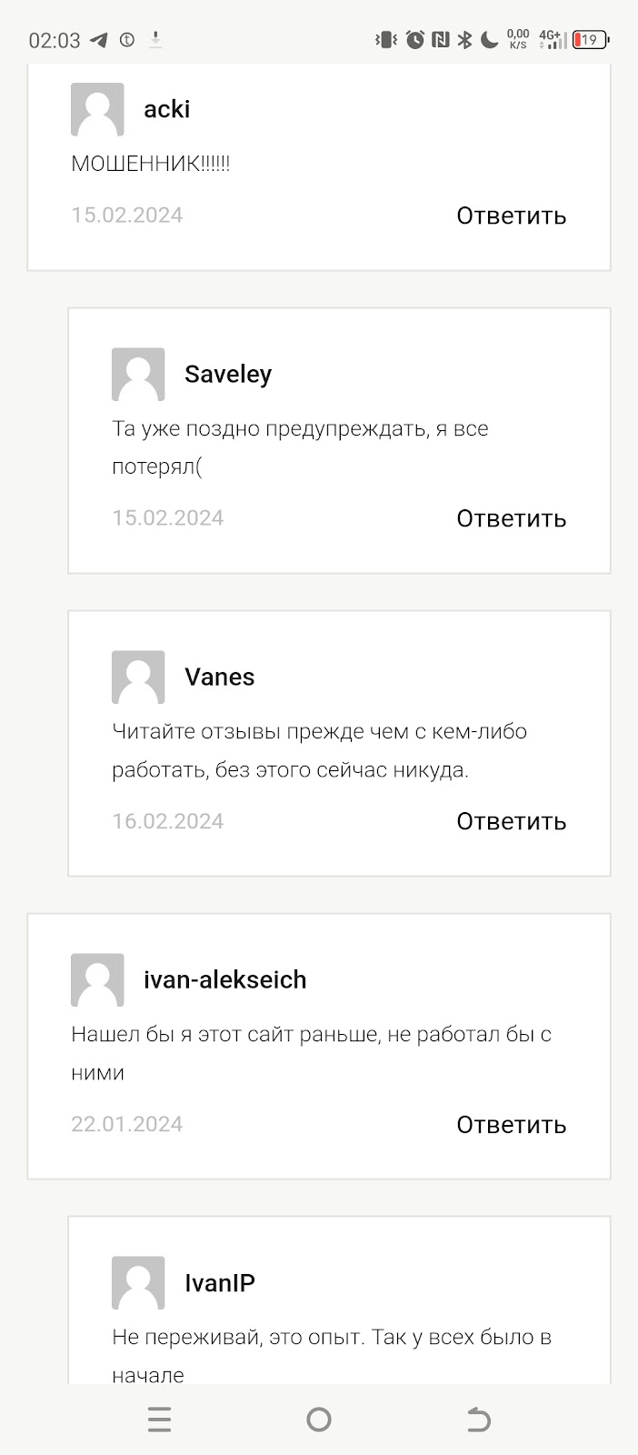 На нашем сайте есть много разных обзоров. Они могут быть полезны вам. Помните, что есть много других, более надежных и известных трейдеров. Будьте осторожны и всегда проверяйте информацию перед тем, как принять инвестиционное решение.