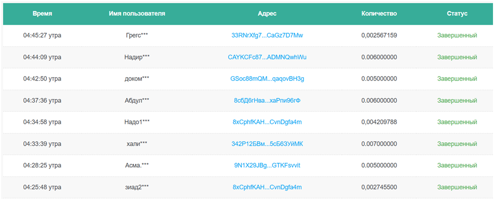 На сайте размещена таблица с выплатами, якобы, игрокам в реальном времени.