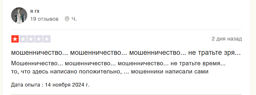 Конечно, отрицательных откликов меньше, но все же они есть. Клиенты пишут, чтобы люди не тратили время зря, скорее всего, компания занимается мошенничеством.