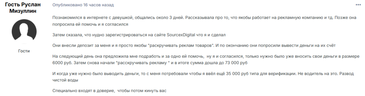Отзывы о компании Sourcex Digital от пострадавших клиентов