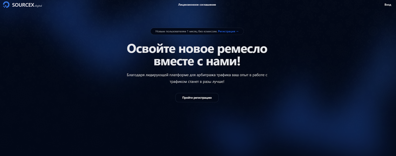 На официальном сайте платформы разработчики сообщают, что это лучшее место для арбитража трафика. Они предлагают ознакомиться с лицензионным соглашением и зарегистрироваться на сайте. Никакой дополнительной справочной информации на главной странице и в других разделах нет.