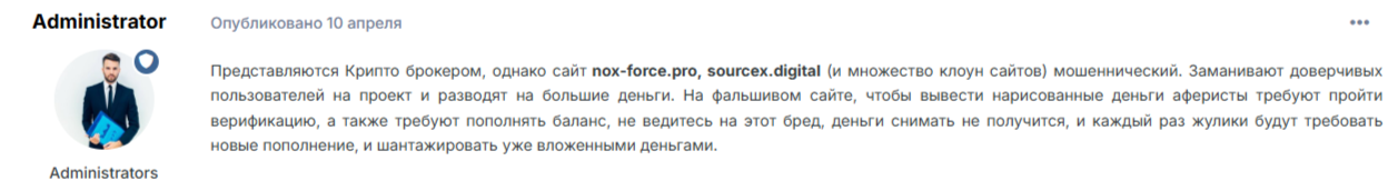 Платформа Sourcex Digital занимается разводом пользователей. Решать вам, стоит связываться с проектом или нет, но мы этого делать крайне не советуем. Если вам знакома эта организация, расскажите о ней в комментариях ниже.