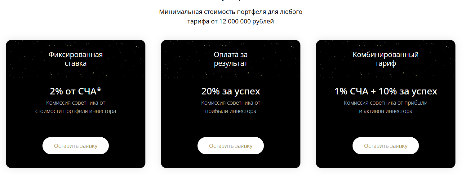 - Комбинированный тариф – оплата 1% от капитала и 10% от прибыли.