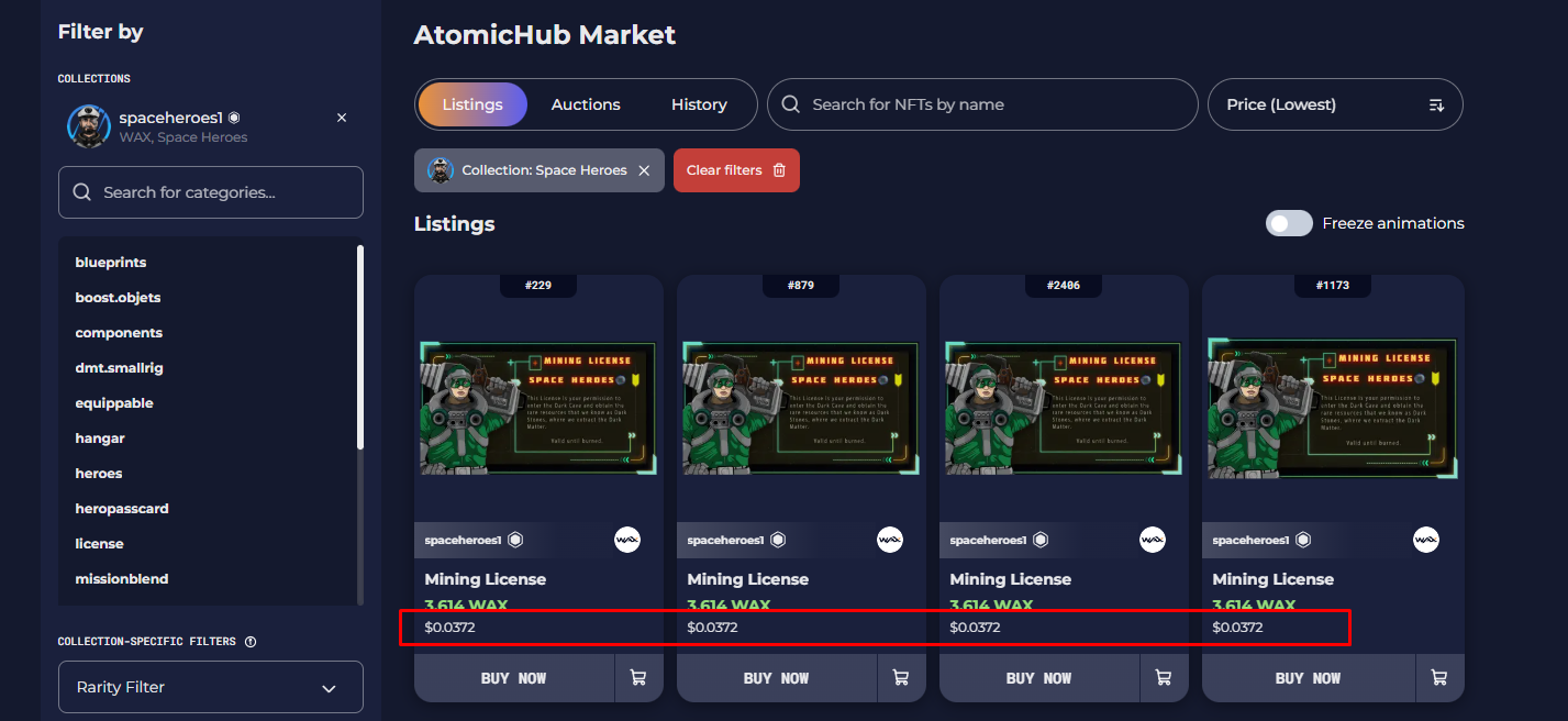 Активы торговались на относительно крупных биржах, которые поддерживали токен WAX, а именно AtomicHub и Alcor. Информация обо всех коллекциях там есть и сейчас, как и торговый объем. Так за последние несколько месяцев одни из самых популярных NFT, типа лицензий и Hero Pass не были проданы ни разу. Из инцидентов можно отметить скам в 2022 году, когда людям быстро вернули все внутриигровые ресурсы и токены, но в середине 2023 ситуация повторилась, а игра закрылась.