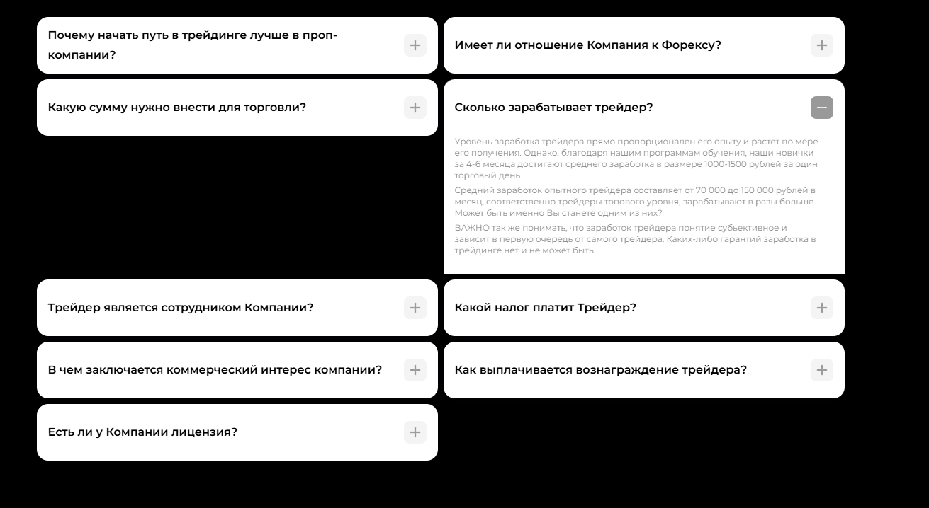 Компания также подчеркивает, что все трейдеры являются не сотрудниками, а клиентами. Отдельно Spectre Trade даже отвечает на вопрос о том, в чем ее коммерческий интерес в подобного рода сделке. Сама компания забирает лишь 10-20% от прибыли, полученной клиентом. При достижении трейдером стабильного дохода в размере 300 тысяч рублей ставка снижается до фиксированных 10%.