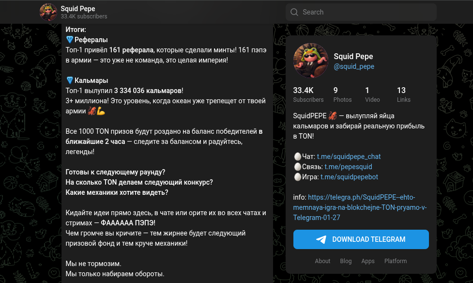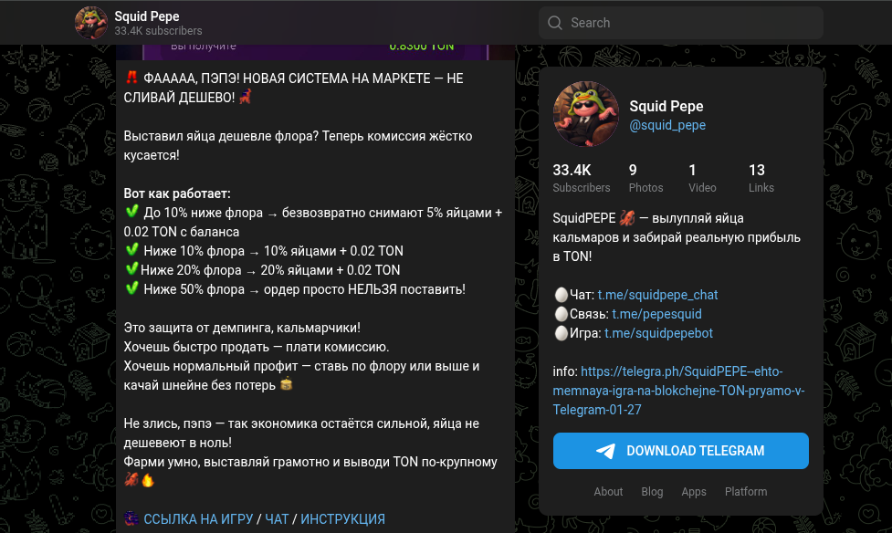 Игра на блокчейне TON Squid Pepe Game: отзывы о проекте Squidpepe, обзор возможностей и разоблачение