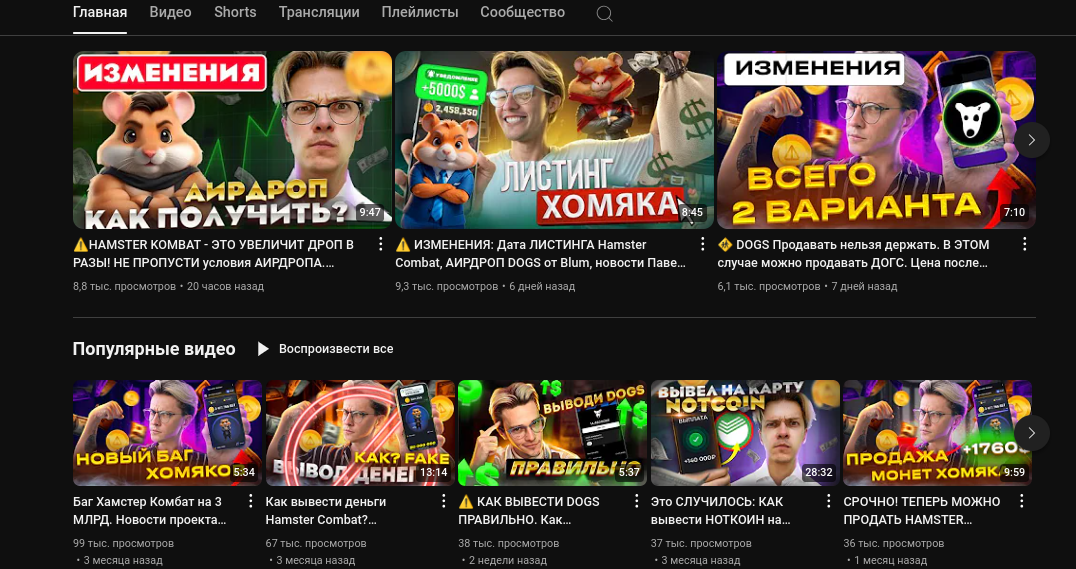 Контент на YouTube-канале не отличается уникальностью — все те же обзоры «темок», но в формате видео на канале.