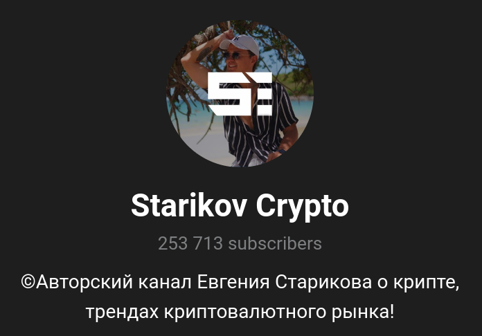 В описании финансового проекта указано, что это авторский канал Евгения Старикова, который предназначен под работу с криптой. Здесь же автор инвестиционного канала Starikov криптохукня говорит, что читатели получают свежую информацию по трендам в области работы с цифровыми монетами.