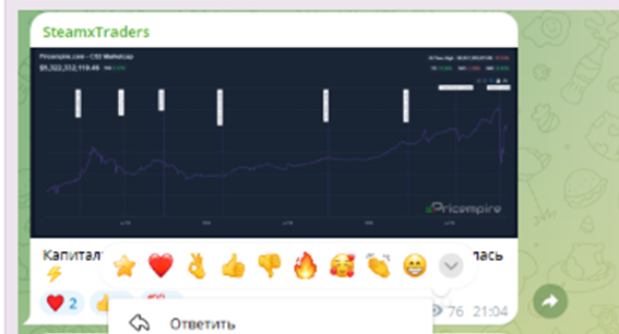 Steamxtraders – телеграм-канал, посвященный трейдингу и инвестициям в игровые валюты Steam. Проект был создан трейдером по имени Георгий для того, чтобы делиться опытом с подписчиками. Стоит ли подписываться на данный канал и верить рекомендациям нашего героя, расскажем в новом обзоре.