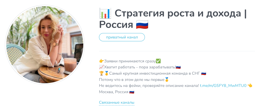 Трейдер @natalia 1nvestt – автор очередного сомнительного ресурса, где обещают превратить копейки в целое состояние буквально за пару-тройку часов. Создатели позиционируют канал в Телеграмм «Стратегия роста и дохода | Россия» как элитный клуб для тех, кто хочет заработать на пампах криптовалют, особо не напрягаясь.