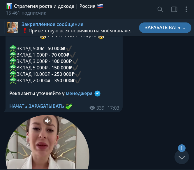 Стоит отметить, что мошенники используют целую сетку клонов, пытаясь избежать блокировок. Если один ресурс получает метку SCAM, они тут же перегоняют аудиторию на запасные аэродромы вроде @futureruscrypto или создают новые паблики, такие как @cryptoinvestwom. Часто мелькают и другие, похожие как две капли воды ТГ-каналы – @cryptorusfirst и ему подобные. Контент везде идентичен: одни и те же скрипты, одни и те же видео с нанятой актрисой и нарисованные в фотошопе скриншоты банковских переводов.
