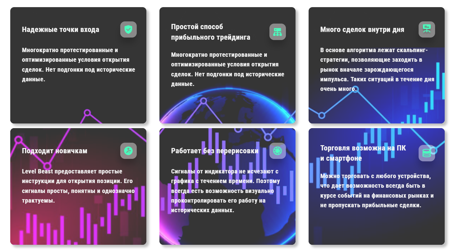 На сайте Level Beast рекламируют два индикатора, но нет никаких сведений ни о разработчиках, ни о сути самих аналитических инструментов. Всю информацию готовы раскрыть только тем, кто оставит на сайте заявку. Плюсов не обнаружено, минусы можно выделить следующие: