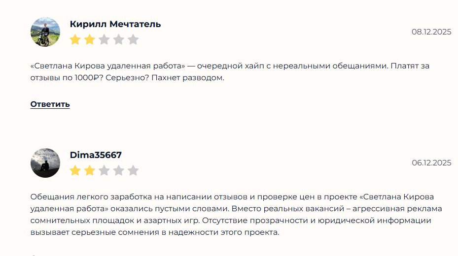 Отзывы о проекте «Светлана Кирова удаленная работа»